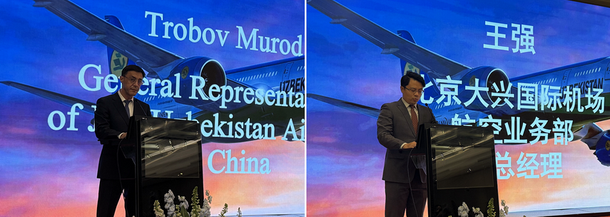 乌兹别克斯坦驻华大使馆公使衔参赞Agzamhodjaev Saidkamol先生、乌兹别克斯坦航空公司Trobov Murod先生、北京大兴国际机场航空业务部王强先生分别致辞。几位代表在致辞中纷纷表示,此次大兴机场直飞航班的开通,为两国旅客便捷往返提供新的航线选择,也必将为两国经贸合作、人文交流与文化互鉴注入新的活力。